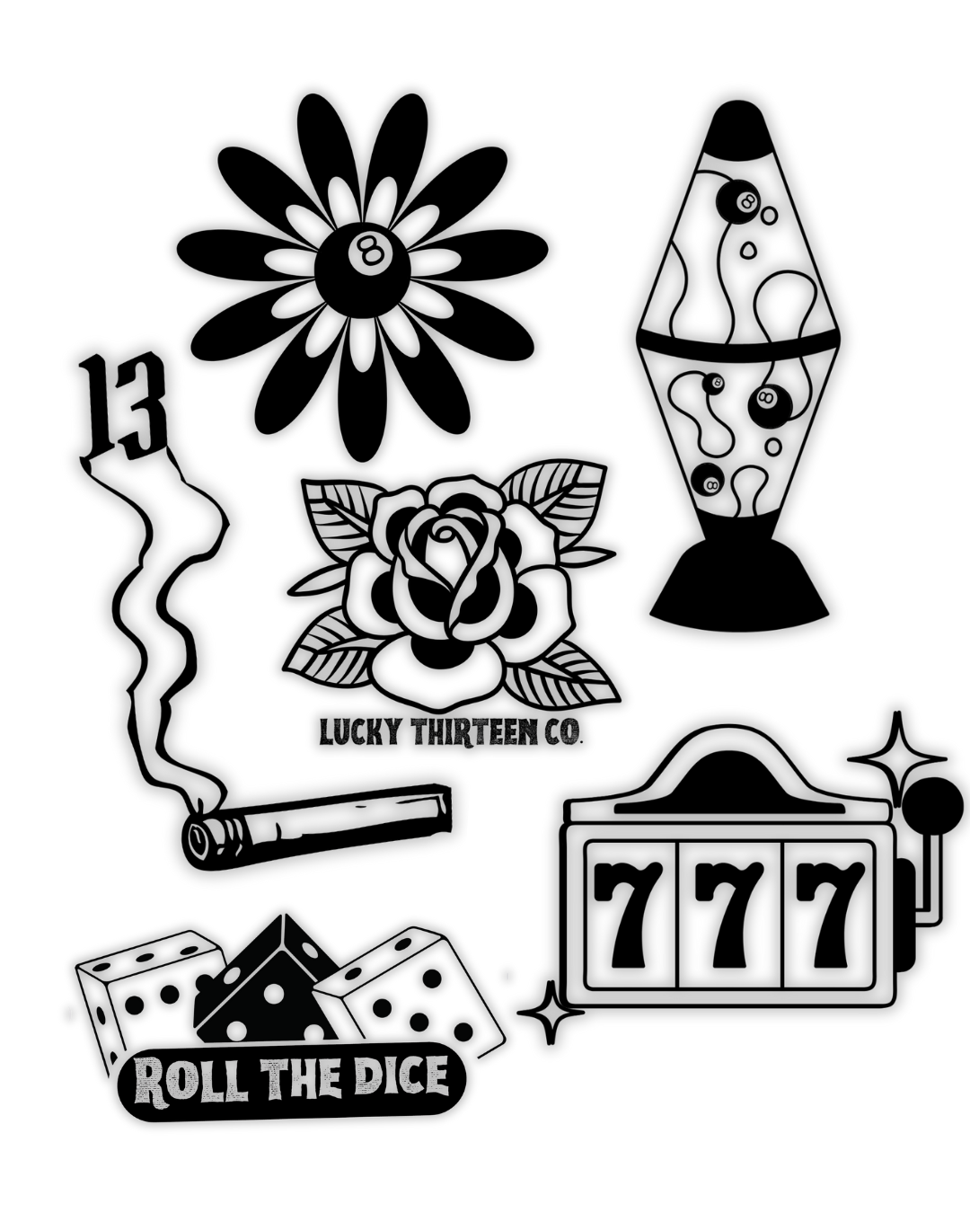 All your favorites in one killer set — the Sticker Pack features six bold designs that channel that classic tattoo-parlor energy and Lucky Thirteen Co. edge.